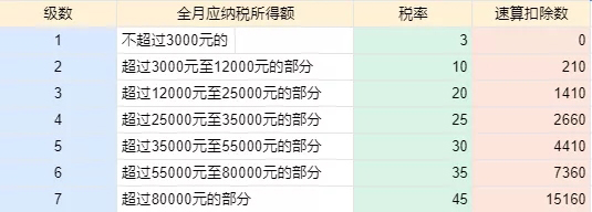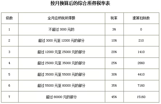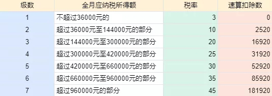 適用稅率:以全年一次性獎金收入除以12個月得到的數(shù)額對照月度稅率表確定: