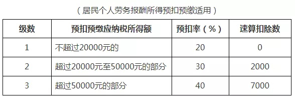 居民個人勞務(wù)報酬所得預(yù)扣率表